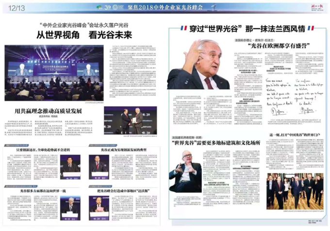 湖北日报整版报道岚明、拉法兰和世界光谷